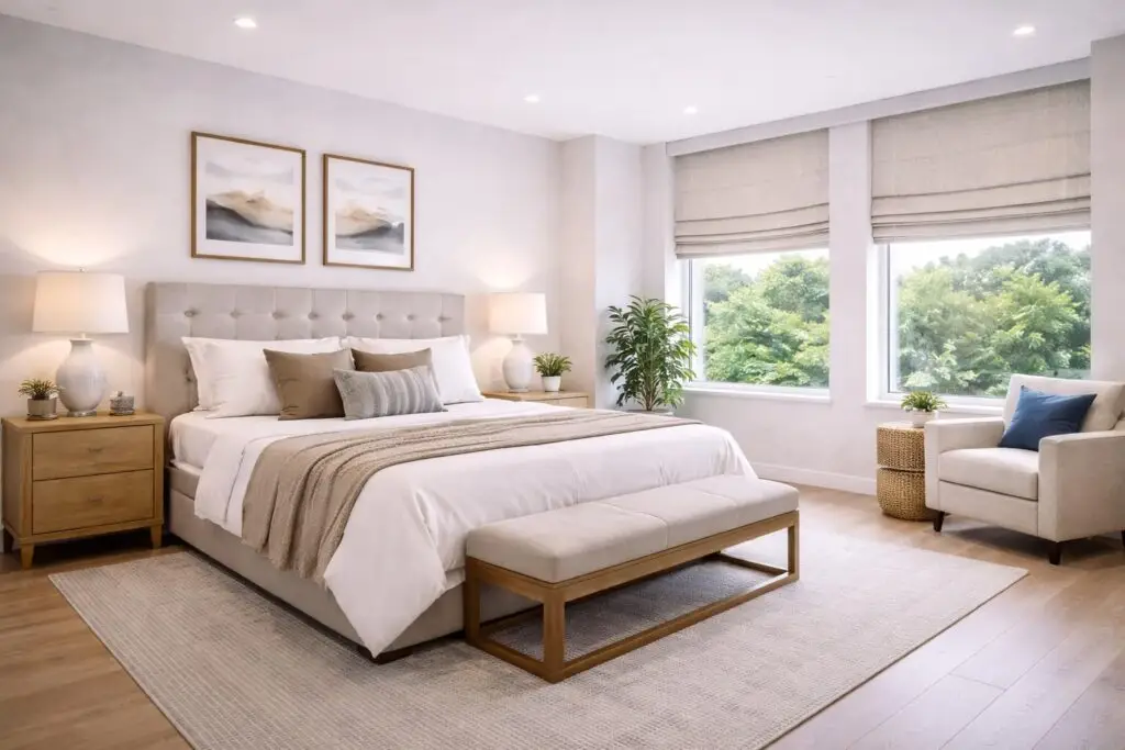 Create a restful retreat with blackout fabrics that block light completely. Sleep undisturbed while maintaining a clean, refined look.