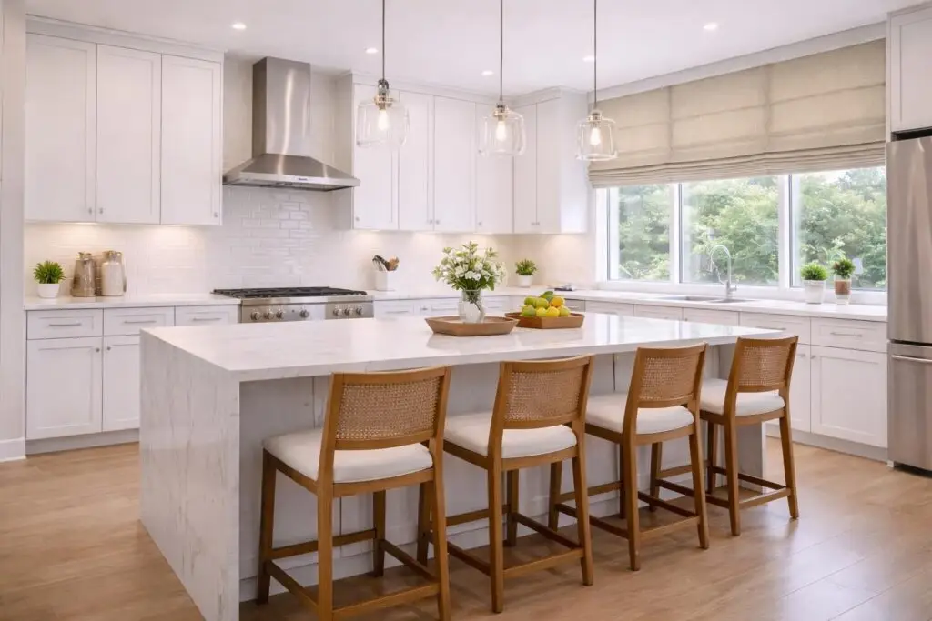 Practical and elegant above sinks and windows. Easy to clean and designed to withstand moisture and daily use.